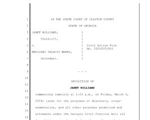 Deposition of Janet Williams, taken on March 6, 2026, in the case of Janet Williams v. Emiliano Palacio Marez; CAFN 2025CV01945; State Court of Clayton County